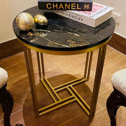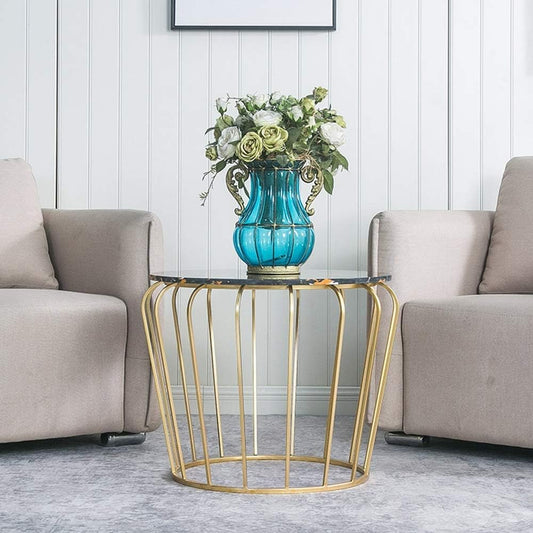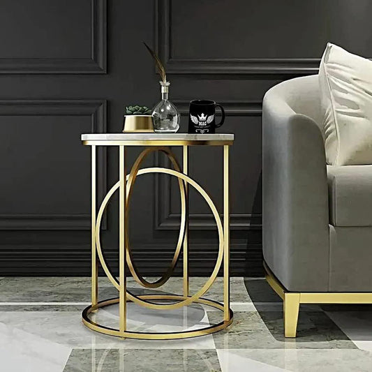 Round Top Geometric Base Coffee Table Luxury Look Sofa Side Table