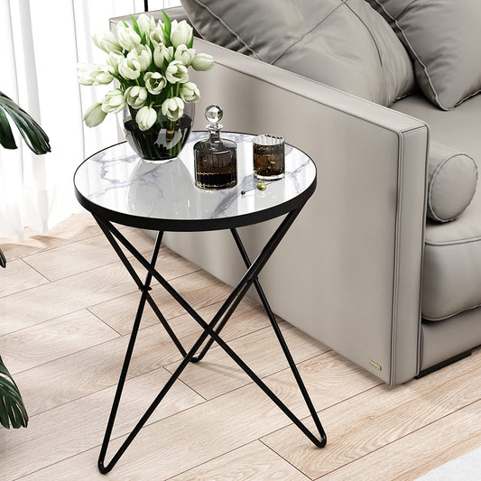 Coffee Table with marble texture sheet Metal Frame for Living & Bedroom Balcony Small Spaces
