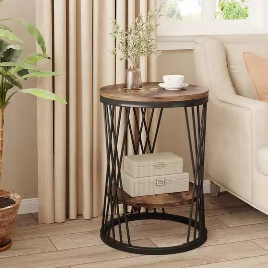 Round Elegance with Dual Wooden Shelves and Artistic Metal Frame, Ideal for Living Room, Perfect for Books,