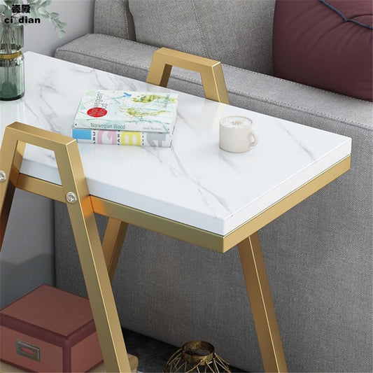 Luxurious Gold Marble Texture Coffee Table Rectangular C Frame Side Table
