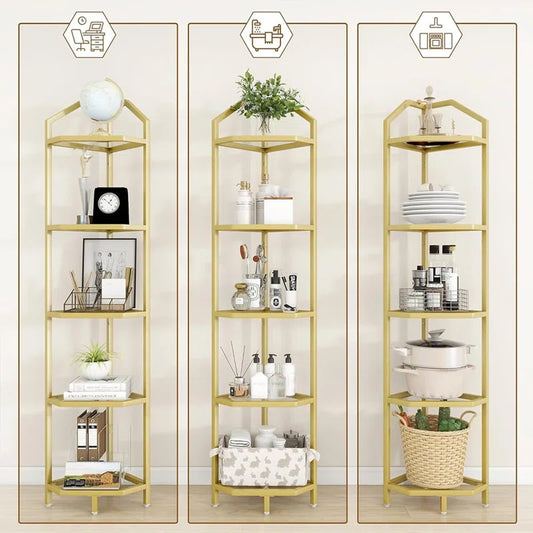 Modern 5-Tier Corner Bookshelf Organizer – Stylish Space-Saving Shelf for Living Room