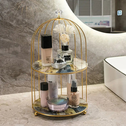 Iron bird cage rack lipstick perfume cosmetics skin care products storage rack finishing table rack bathroom cosmetics storage