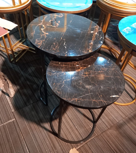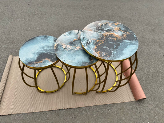 Center + nesting table ( set of 3 ) Metal frame wooden marble texture top