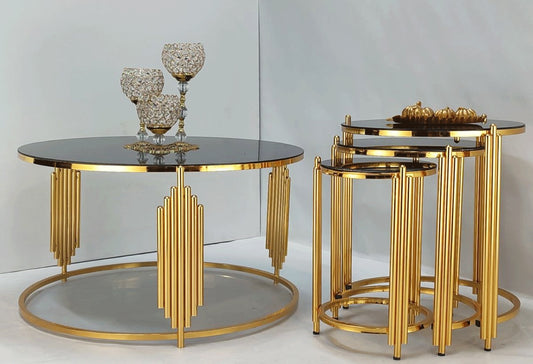 3pc Luxury Modern Style Look Nesting Table Set Gold Paint Finish