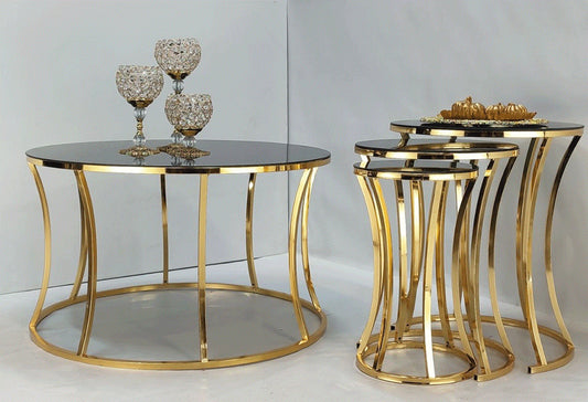 3 Pieces Round Nesting Table Set Gold Paint finish