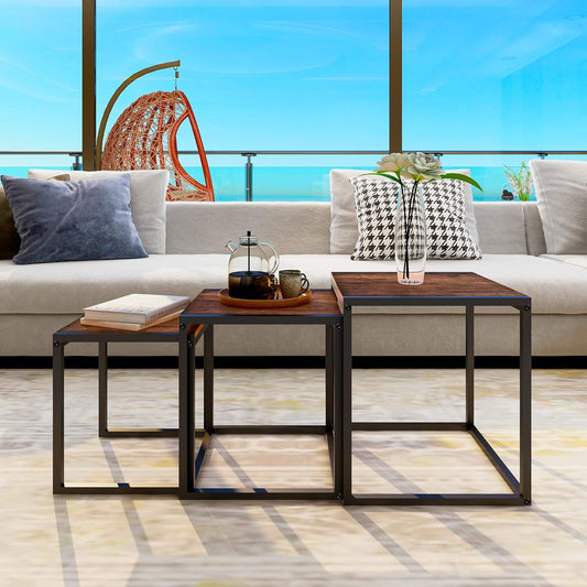 3-Piece Center Table with Nesting Tables Set – Space-Saving Living Room Furniture