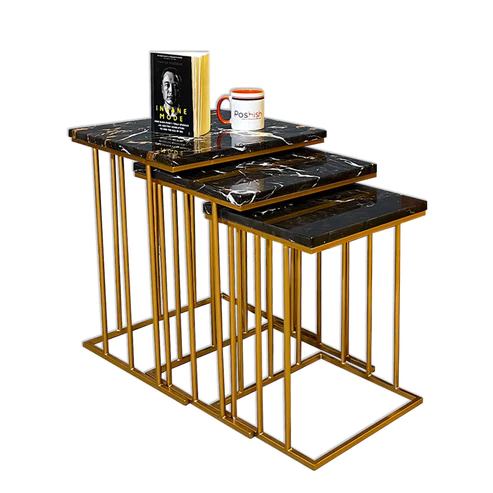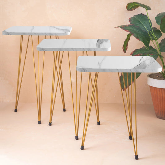Marble-Finish Nesting Tables - Wooden Top with Metal Frame for Living Room | Metal Furniture