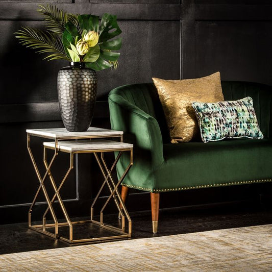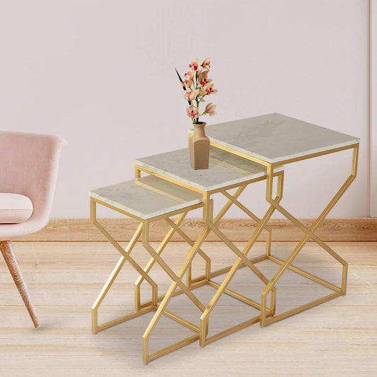 Luxury Marble Nesting Table Set - Golden Zigzag Frame Side Tables for Living Room | Metal Furniture
