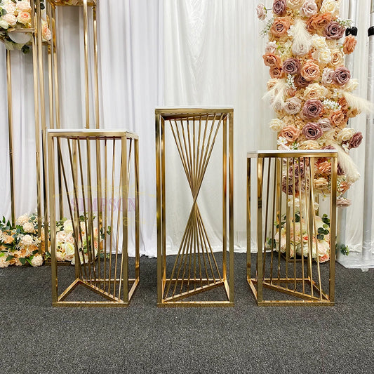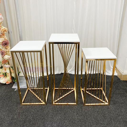 3pc Nesting Tables Set Square Shape Gold Paint Finish X Model Set