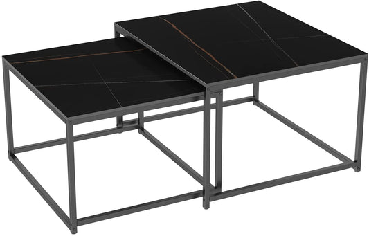 3 Piece Square Nesting Table Set - Wooden Marble Texture with Metal Frame | Metal Furniture
