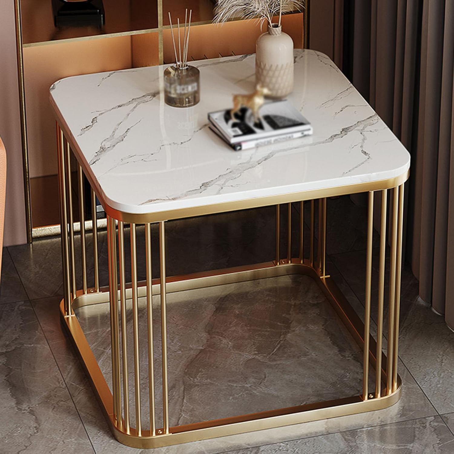 Coffee Table with marble texture sheet Metal Frame for Living & Bedroom Balcony Small Spaces