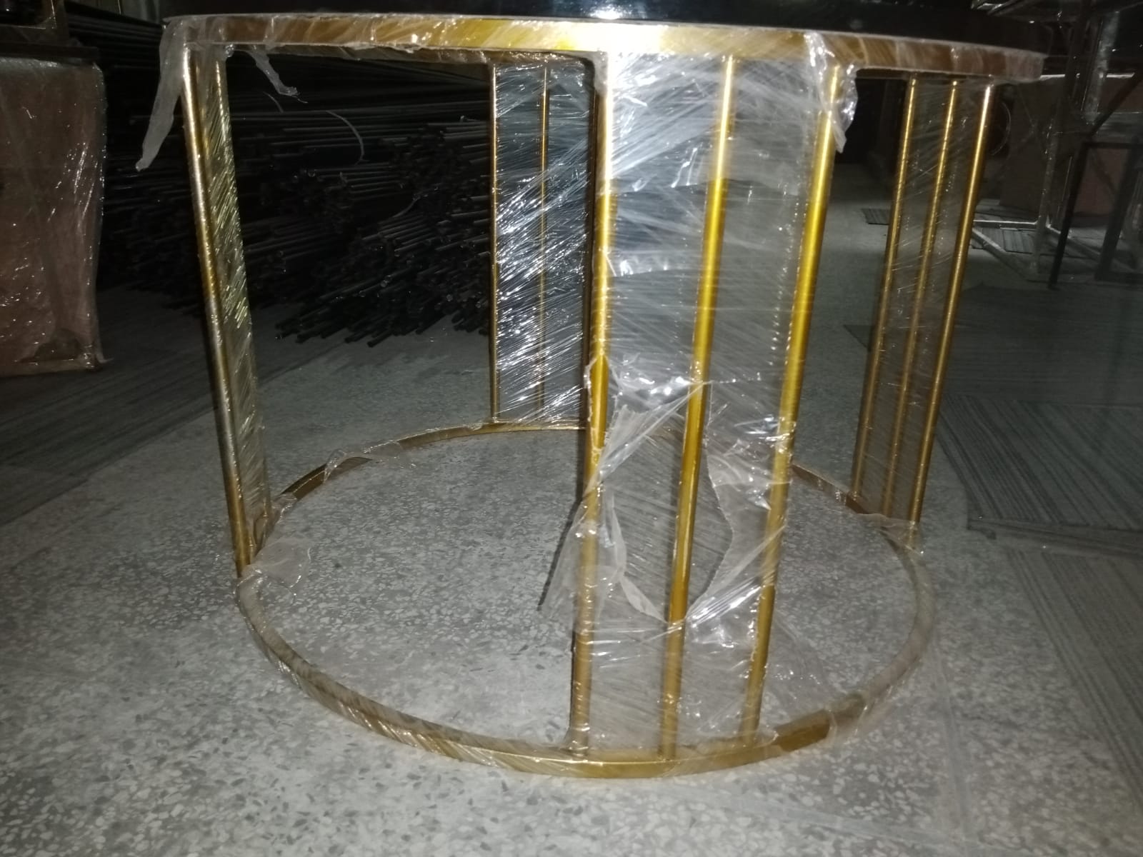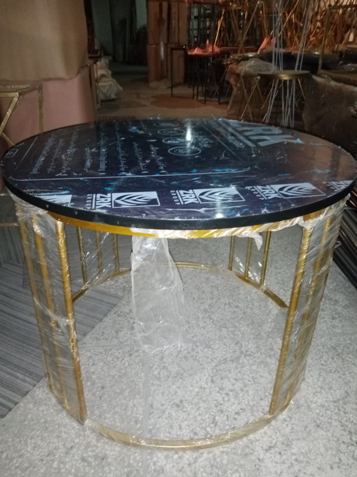 - Metal: Some round tables feature metal tops, such as brushed steel, gold, or brass, combined with matching or contrasting metal legs. These tables are particularly popular in contemporary, industrial, or modern interiors.